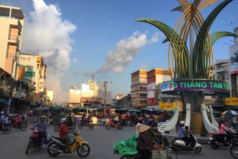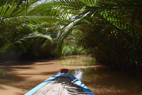 Ben Tre faces onto the Ben Tre River and while the town is a bit of a slap dash affair with just a market and museum of primary interest, across the river, the town fades back into a backdrop of canals and palms. Interspersed amongst these are a network of homestays where you can stay and better appreciate Delta Life.