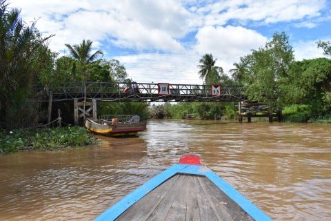 Most places will rent you a scooter or a bicycle, but the best way to really appreciate the Delta is to get out on the water, and to do that you are best to hire a sampan (a very small wooden boat) and be paddled along for a few hours. The smaller the boat the better and go early, not just to dodge the worst of the midday heat, but also for a better chance of seeing the birdlife, including electric blue kingfishers.